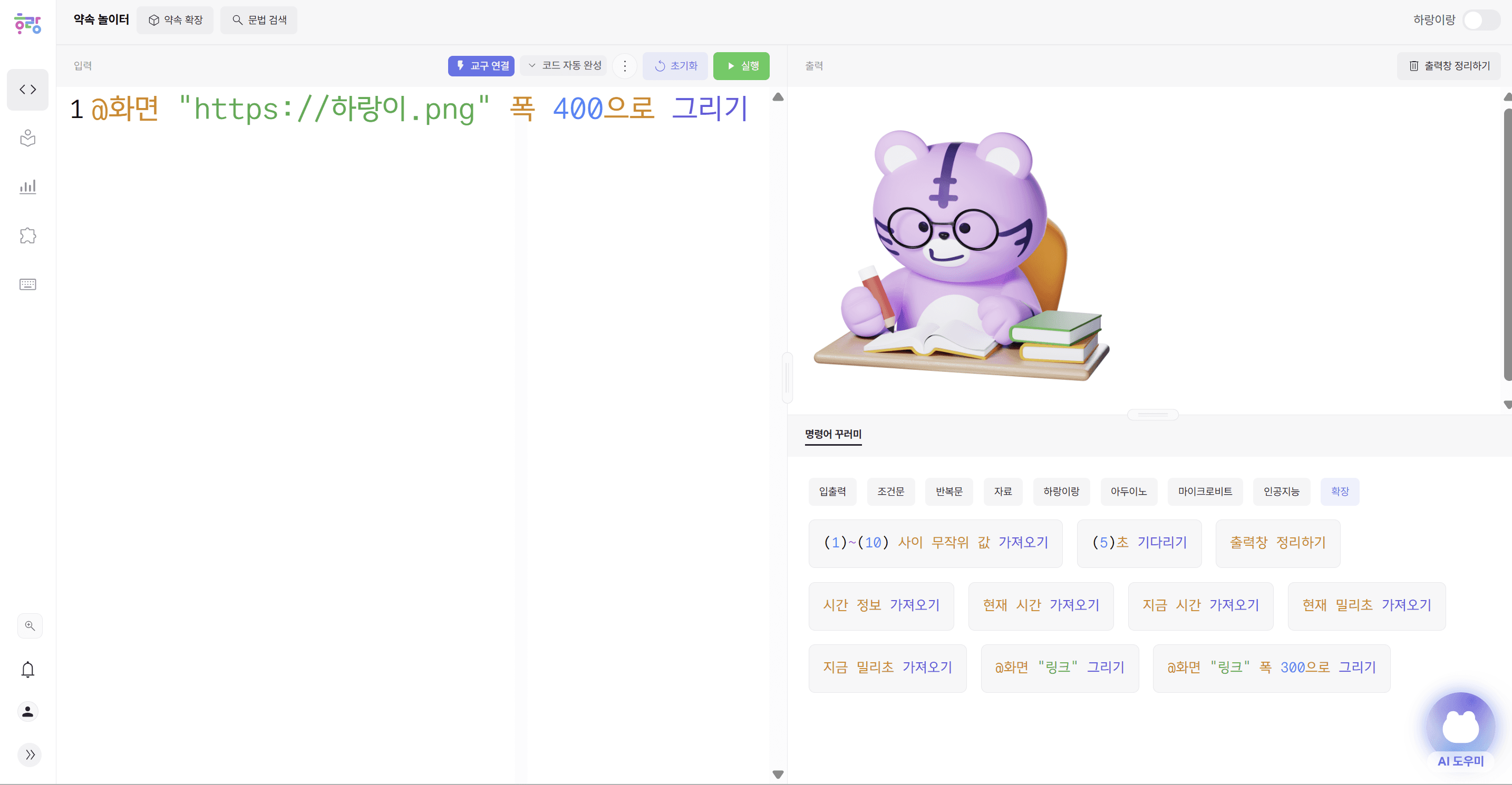 ๋ช ๋ น์ด ๊พธ๋ฌ๋ฏธ๋ก ๋๋๊ทธ๋ง ํด๋ ์ฝ๋๊ฐ ์ ๋ ฅ๋๊ณ , ํ๊ธ ์ด์๊ณผ ์๋ฆผยท์ ์ถ ํ์ธ์ด ํ๋์ ์ฌ์์ก์ด์.