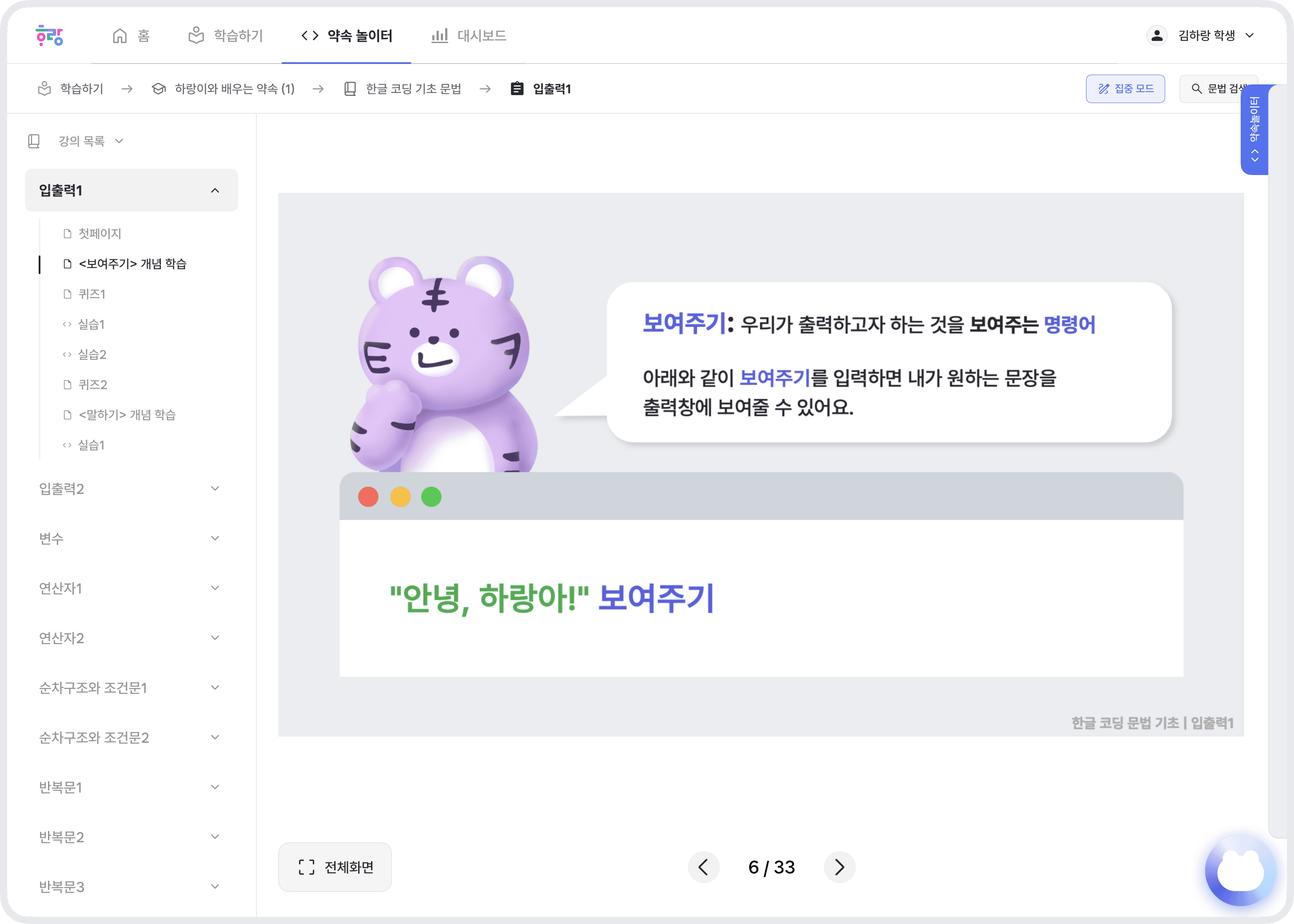 1달 동안 한글코딩, 호랑의 교사용 계정을 무료 체험해보세요!