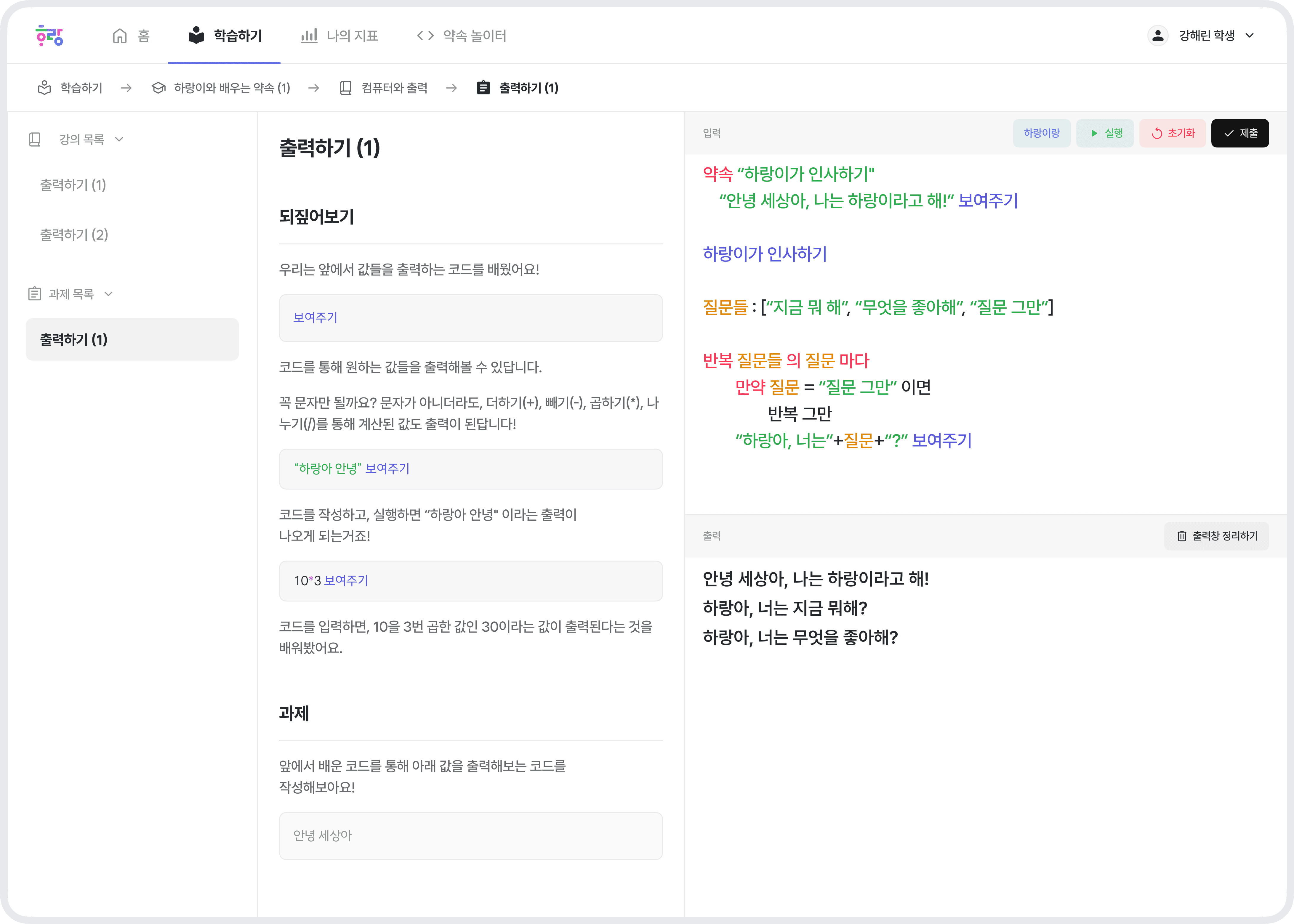 호랑 덕분에 코딩 도전이 즐거운 경험이 되었어요.