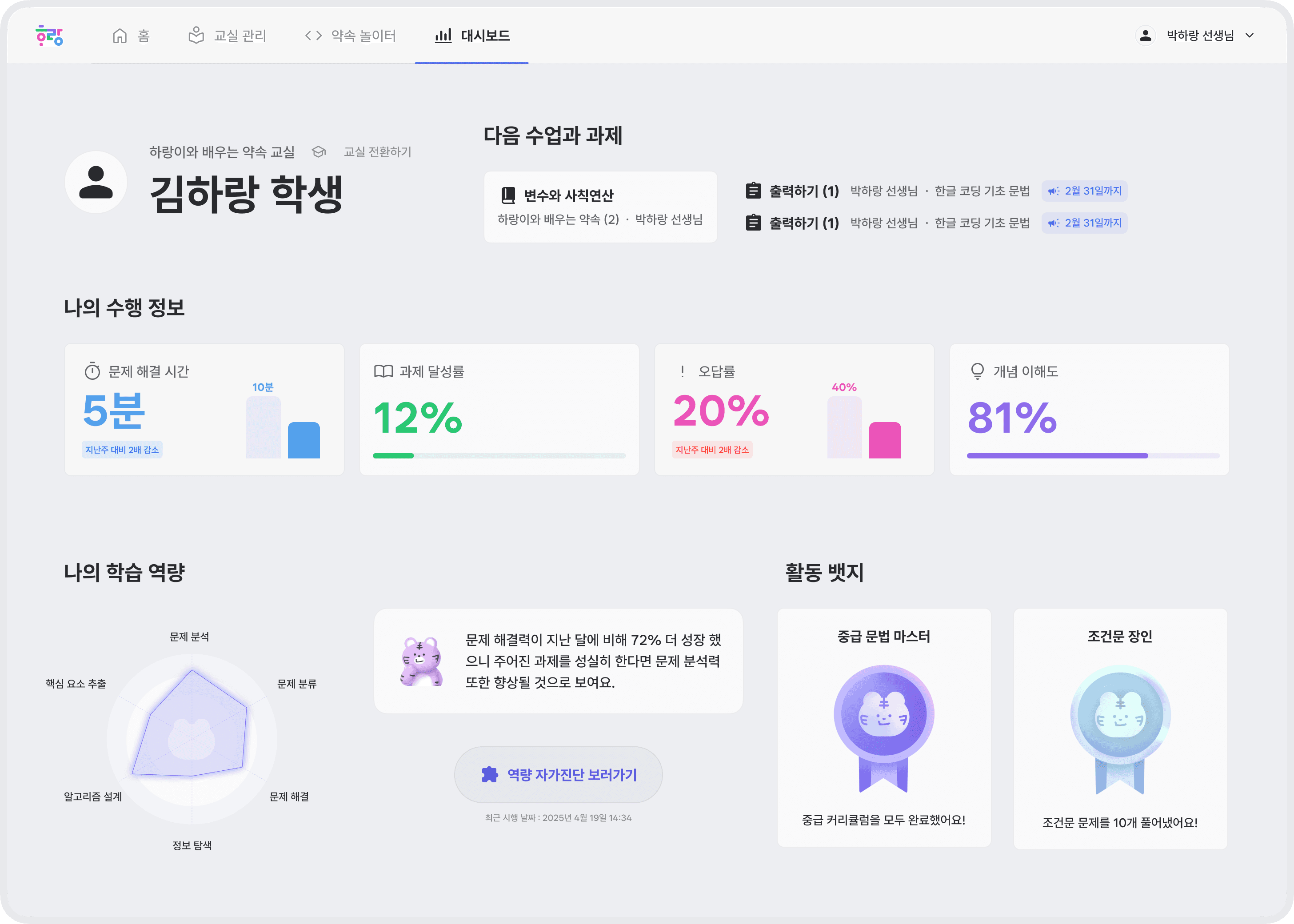 미션을 수행하면서 하랑이의 뱃지를 찾아보세요! 어려운 프로그래밍을 쉽고 재밌게 배워봐요!