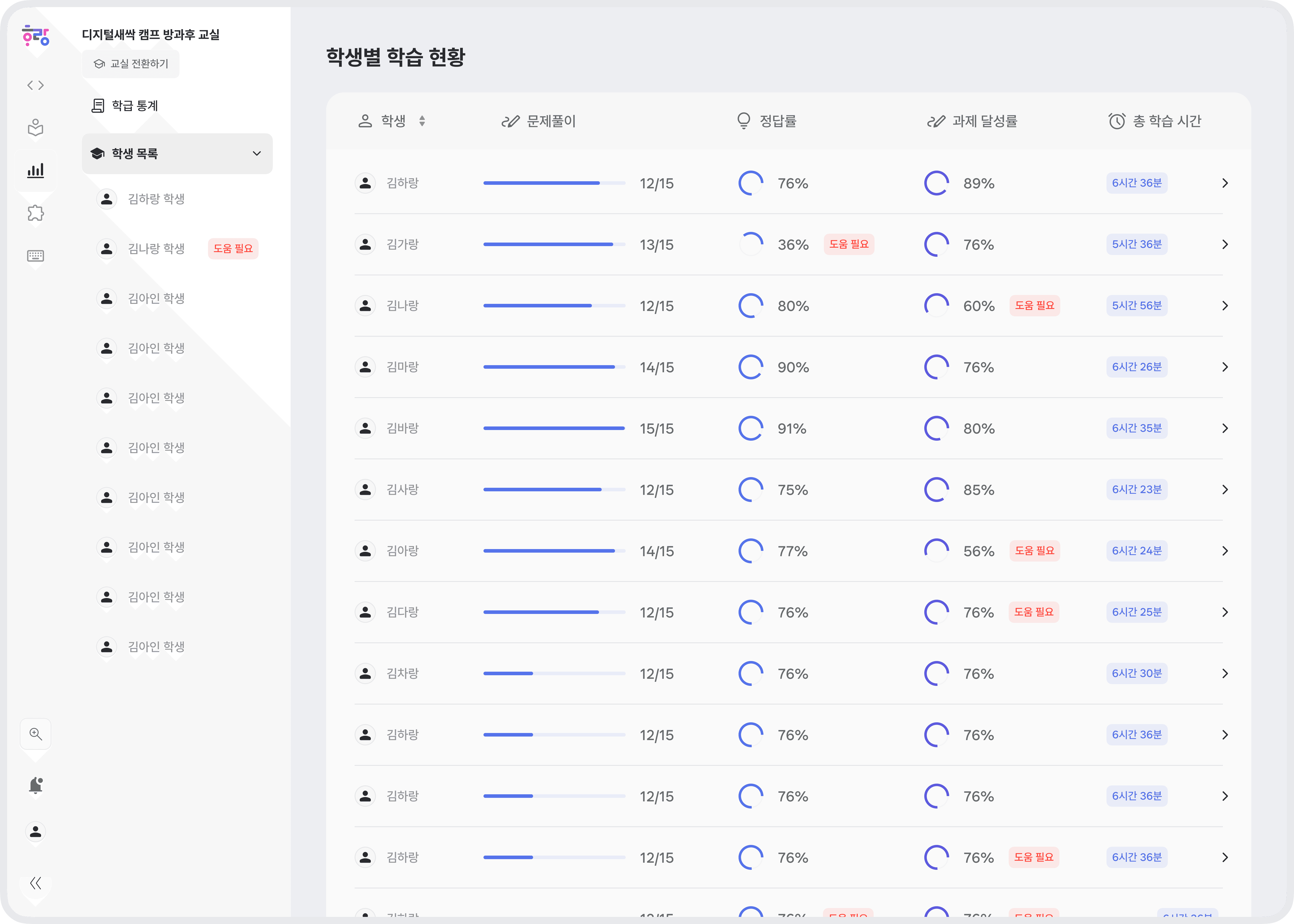 학생별 학습 현황을
